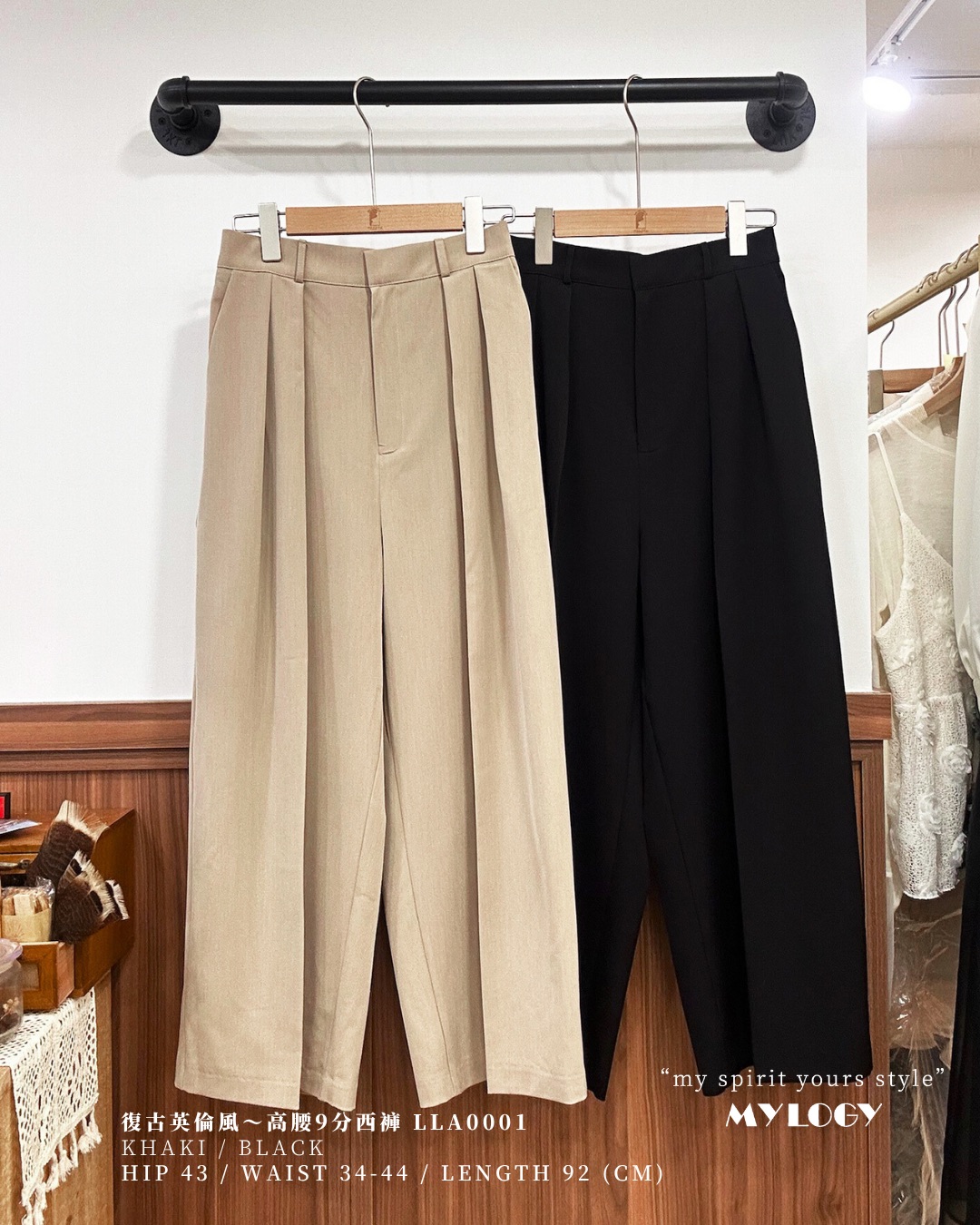 復古英倫風~高腰9分西褲 LLA0001 Color: Khaki / Black Size: Free Size 呎吋cm 腰闊:34-44 | 臀部 : 43 長度:92|跨下 : 36 | 褲管 : 30 *所有商品均為人手量度呎吋,有機會出現1-3cm誤差。 Misslogy: 👩🏻🦰Winki 160cm, M size ,, 現貨發貨日: 2-3個天作天內 一般訂貨截單日為每月7&20號❤️ 到貨日為截單後1~3星期內發貨。 如有特別業務狀況,亦會即時在ig fb story內發放 ʟᴏᴠᴇ~ 感謝各位girls嘅耐心等候!