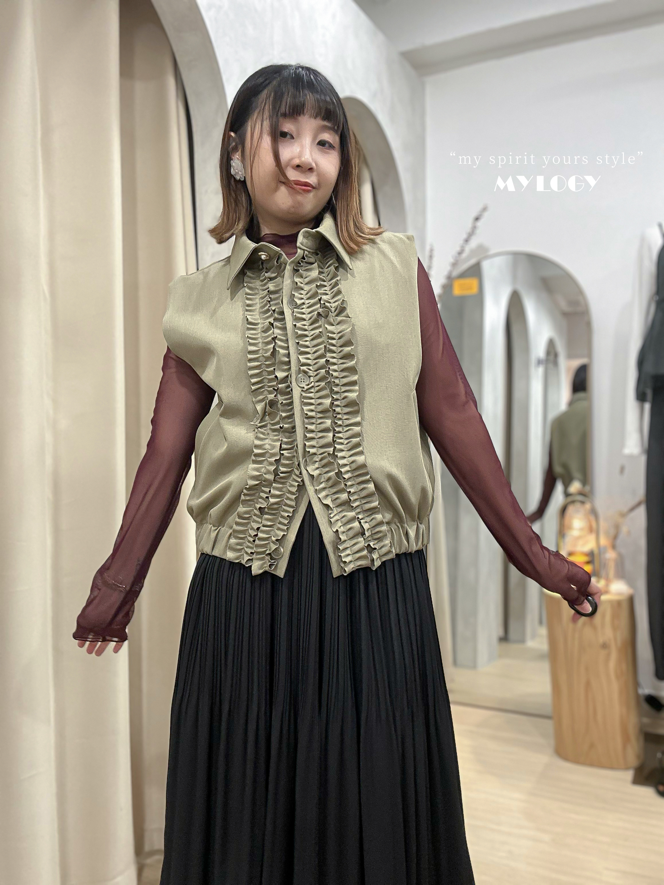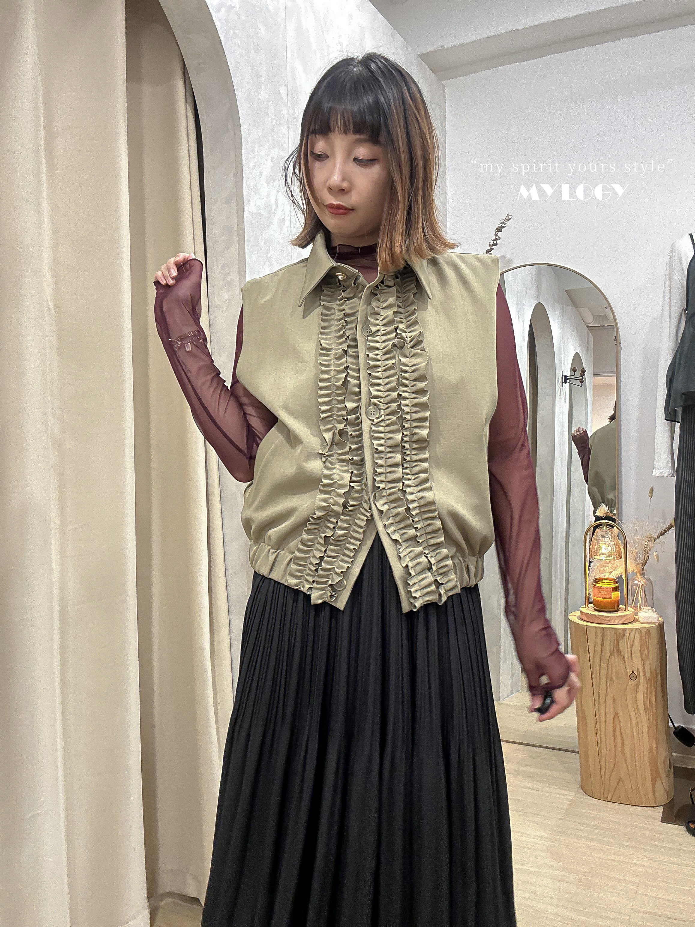 空氣感~薄紗ruffle邊內搭上衣 LT0002 Color: 甜美酒紅 Wine / 高級灰 Grey Size: Free Size 呎吋cm 膊闊:38 | 胸圍 : 35 | 袖長 : 68 | 袖闊 : 10 長度:60|下闊 : 36 | 領口:15 *所有商品均為人手量度呎吋,有機會出現1-3cm誤差。 Misslogy: 👩🏻🦰Winki 160cm, M size ,, 一般訂貨截單日為每月7&20號❤️ 到貨日為截單後1~3星期內發貨。 如有特別業務狀況,亦會即時在ig fb story內發放 ʟᴏᴠᴇ~ 感謝各位girls嘅耐心等候!