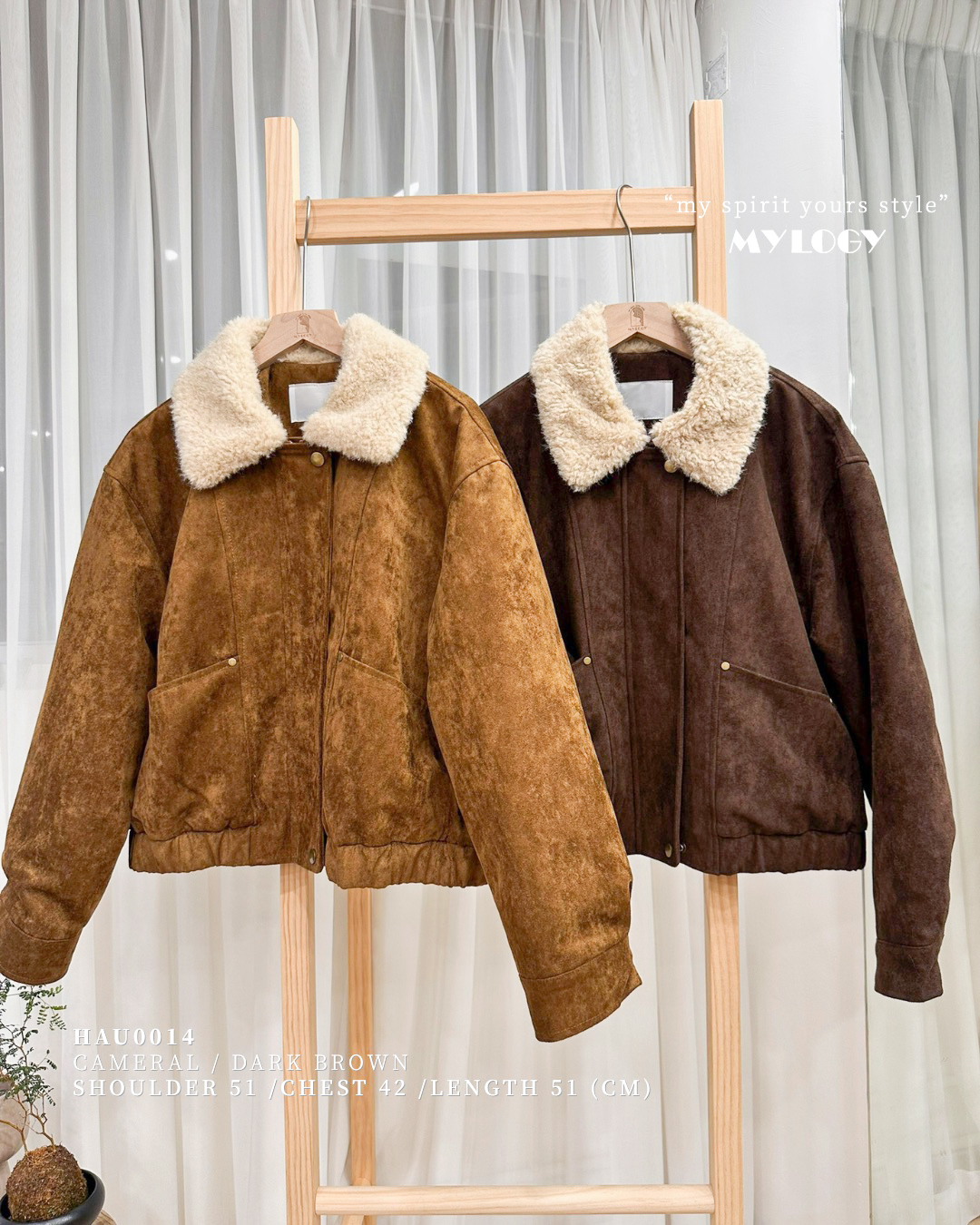 美式古著感!中厚料!麂皮毛領飛行員外套 HAU0014 (made in Korea) Color: Caramel, dark brown Size: Free Size 呎吋cm 膊闊:51 | 胸圍 : 42 | 袖長 : 52 | 袖闊 : 12 長度:51|下擺:44|領口:16 *所有商品均為人手量度呎吋,有機會出現1-3cm誤差。 Misslogy: 👩🏻‍🦰Winki 160cm, M size ,, 現貨發貨日: 2-3個天作天內 一般訂貨截單日為每月7&20號❤️ 到貨日為截單後1~3星期內發貨。 如有特別業務狀況,亦會即時在ig fb story內發放 ʟᴏᴠᴇ~ 感謝各位girls嘅耐心等候!